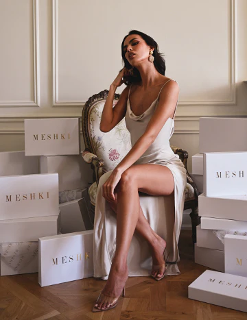 Meshki saia maxi dividida em malha petra BLLT1366 roupas cinza
