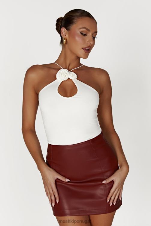 uma evolução do nosso top clássico frente única cruzado, é feito de nosso tecido elástico justo, com alças elásticas e adornado com detalhes de apliques de rosas 3D. a frente em formato de fechadura oferece um detalhe atraente nesta peça fácil de estilizar para o dia-a-noite. combine com nossa minissaia de couro sintético fulvo para um visual atemporal.