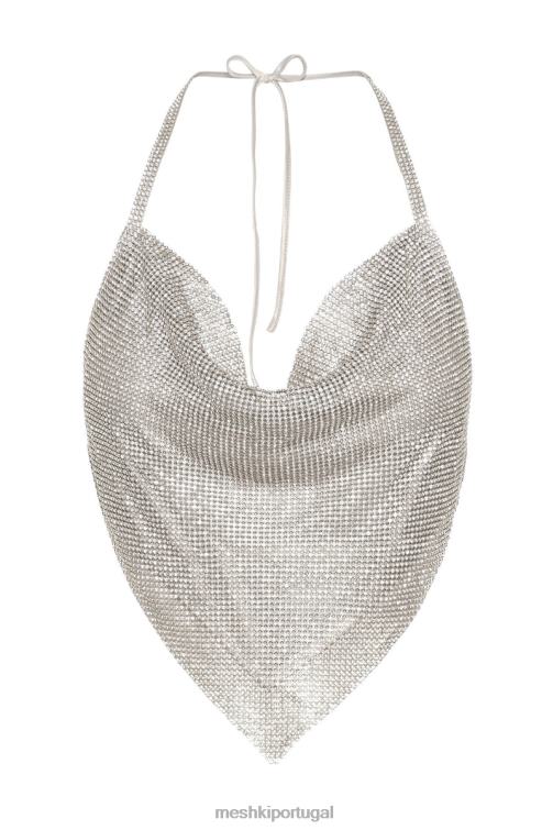 Meshki blusa daphne diamante com decote redondo BLLT811 roupas prata