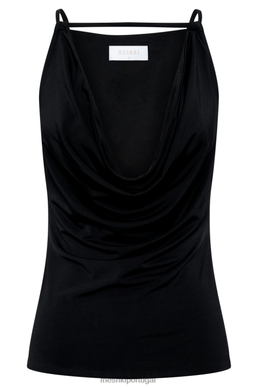 fresco e confortável, este top de palangre sem mangas combina uma fabricação elástica com um decote ajustável e um versátil, dois por - um projeto. empurre ambos os lados da frente da blusa para qualquer um dos lados para criar um decote largo e aberto ou junte-os para criar um visual mais modesto, fluido e com decote em V profundo. combine com nossa minissaia jeans hollis para completar o look.