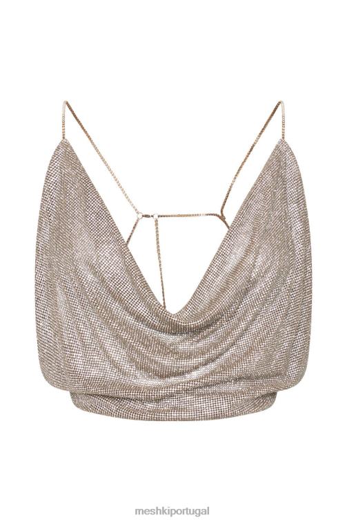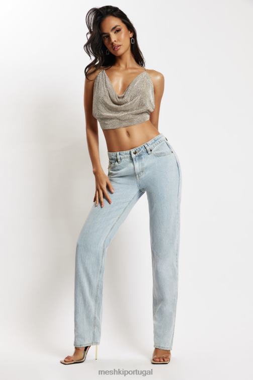 trazendo um pouco de qualidade de estúdio 54 estrelas para o novo milênio, tudo o que reluz é definitivamente ouro com nosso top drapeado Shanice Glomesh. com Shanice, adaptamos o icônico tecido glomesh glitter em um decote lisonjeiro, conectado por finas cordas ajustáveis ao longo das costas nuas. quando você festeja com Shanice, você realmente chegou. use com nossos jeans sonya de cintura baixa para completar o look.