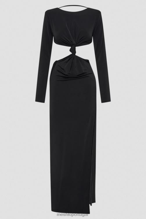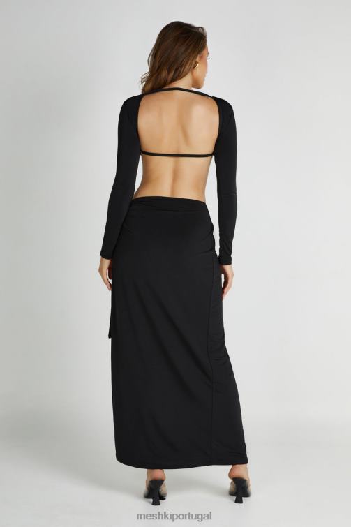 Meshki vestido maxi com nó justo kiandra BLLT271 roupas preto