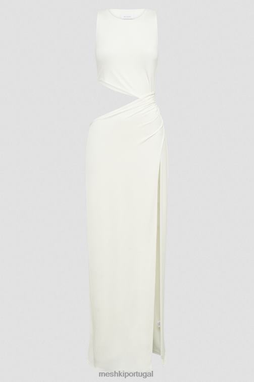 o vienna é um vestido maxi luxuoso que possui um atraente decote redondo na frente e nas costas. Feito a partir de uma mistura de elastano meshki premium, oferece um alongamento confortável que elimina a necessidade de fechos, permitindo que você calce e tire sem esforço. ele também apresenta bordas assimétricas marcantes e franzidos meticulosos na costura lateral do lado esquerdo do usuário, adicionando um toque de detalhes intrincados e interesse visual. a divisão alta, perfeitamente integrada ao forro, mostra elegantemente as pernas e proporciona facilidade de movimento. com um corpete colado ao corpo que contorna sua figura e uma saia de corte reto que cai graciosamente até o chão.