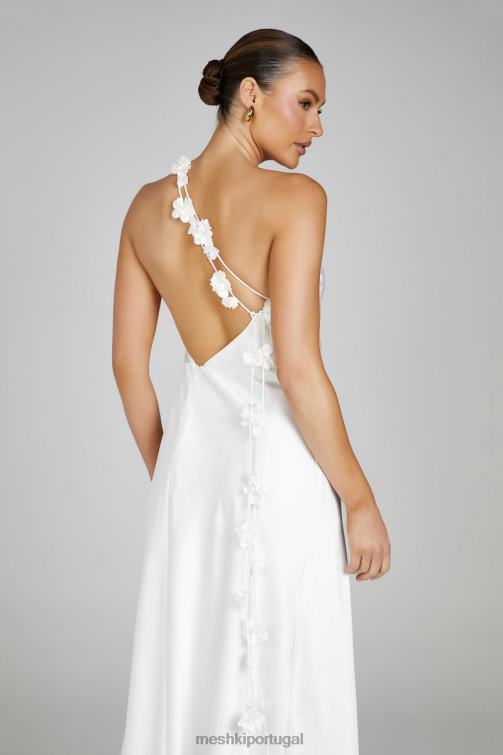 rebecca é um vestido maxi sem mangas, de um ombro só, com decote inclinado e assimétrico. Detalhes de flores rosas em 3D pontilham as alças que passam pelo rouleau traseiro e eventualmente ficam soltas como um lenço floral drapeado, criando um visual elegante. o tecido é uma confortável mistura de malha que cai ao longo de suas curvas e cai no chão, terminando em uma dramática poça de tecido. combine com saltos plataforma kailani para completar o visual.
