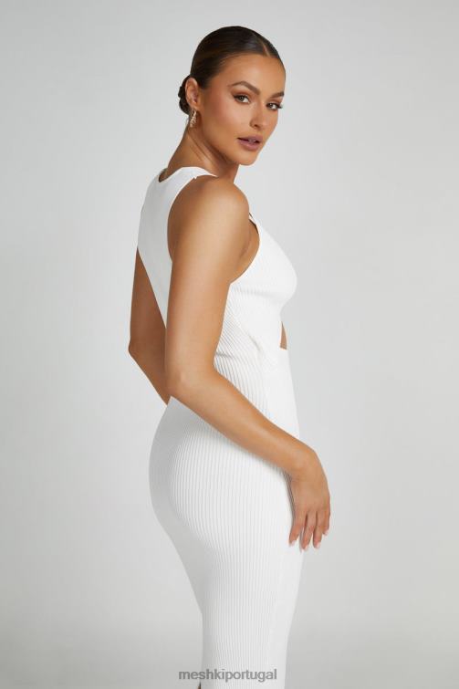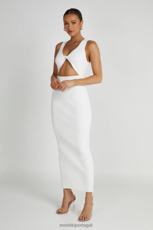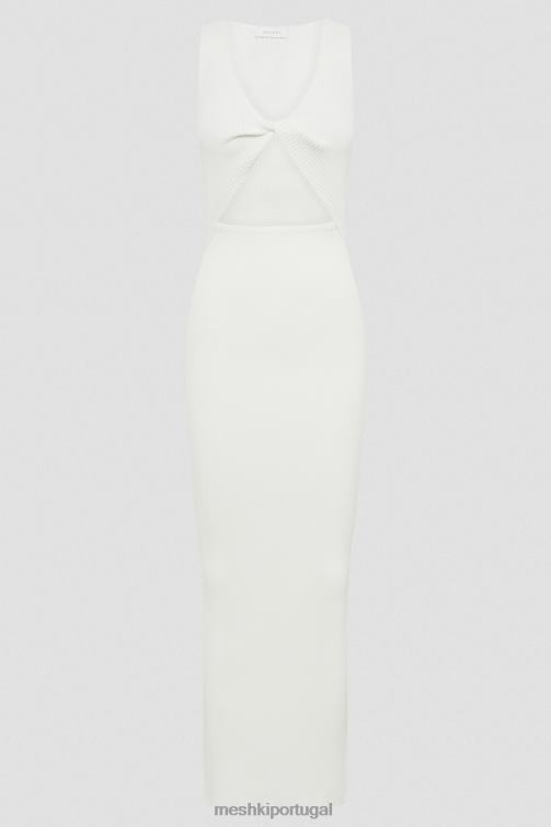 kaesha é um vestido de malha sem mangas com alças largas, decote em V profundo e um grande recorte triangular ao redor da cintura. parte inferior do tronco. sua saia é de comprimento máximo, corte justo ao corpo, que abraça as curvas e cai até os tornozelos em uma bainha reta. a fabricação de malha meshki personalizada permite esticar e moldar ao seu corpo sem perder sua forma original. o nó central torcido adiciona outro nível de detalhe visual que torna este vestido tão atraente.