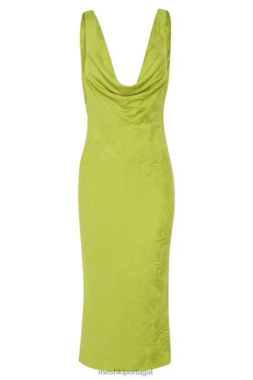 Meshki vestido midi com capuz fallon BLLT624 roupas verde-amarelado