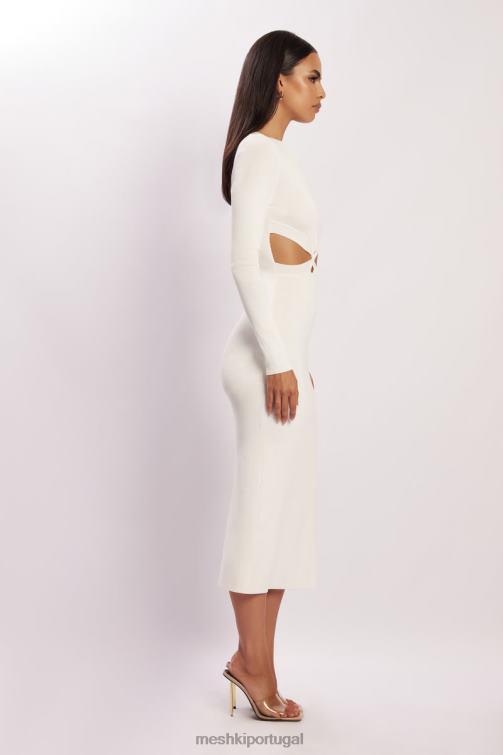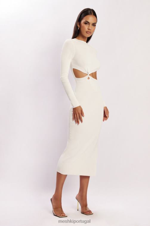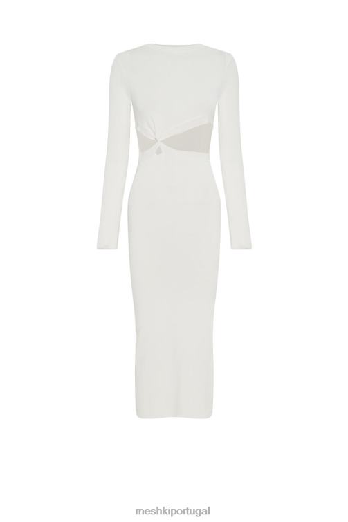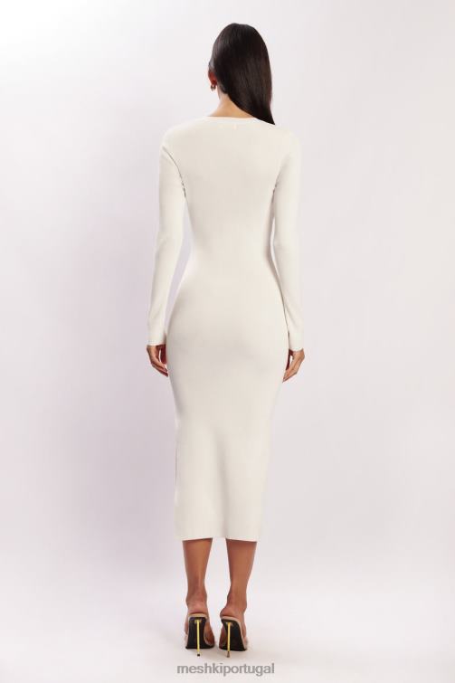 entregue-se a um momento midi em mila. ostentando um corte clássico com um toque contemporâneo, mia trabalha para embelezar sua forma com sua malha canelada e recorte lateral na cintura. ela apresenta um decote alto sofisticado, torção frontal e divisão lateral para um ponto de diferença elevado. combine com mulas pontudas para levá-la da mesa para o jantar com facilidade.