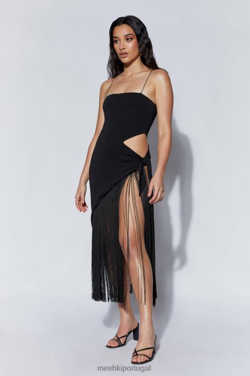 Meshki vestido midi transpassado yasmin com franjas BLLT625 roupas preto